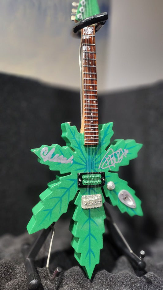 Rare - Tommy Chong & Cheech Marin Signed Leaf Mini Guitar