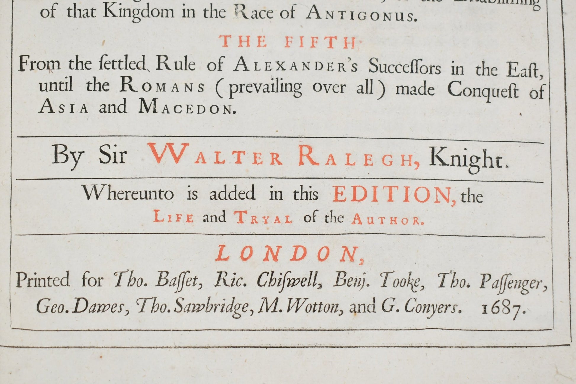 “The History of the World, in Five Books… By Sir Walter Raleigh, Knight.”