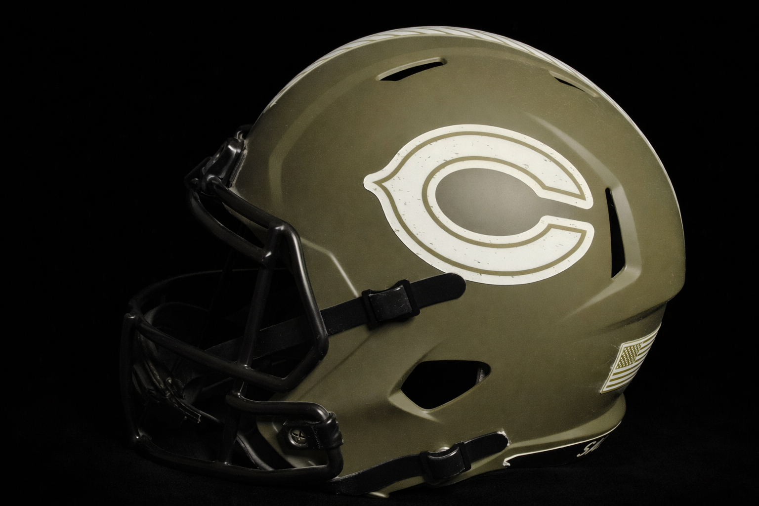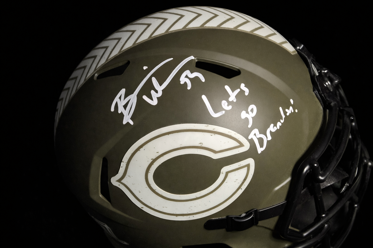 Brian Urlacher autographed Chicago Bears full-size Salute to Service display helmet.
